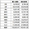 上記の表とグラフを作成する際の各銘柄の購入価格と現在価格の比較は以下の通りです。