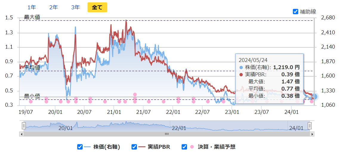 1.PBRが直近5年間の平均である0.77倍に到達