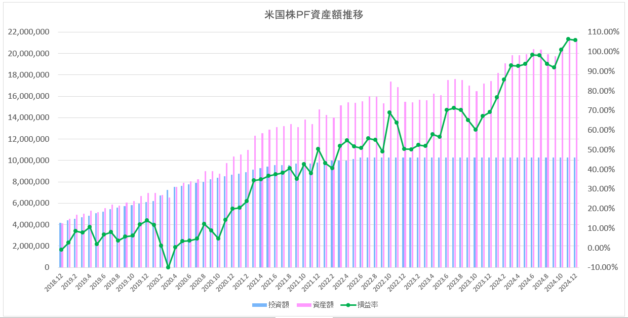米国株ポートフォリオの資産推移(2018年12月~2024年12月)