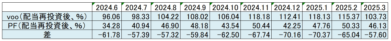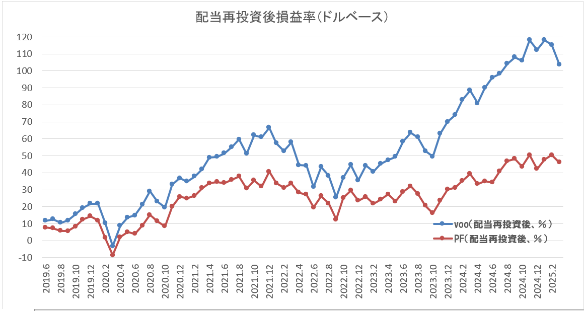マイ米国株ポートフォリオ VS VOO(2025年3月末時点)