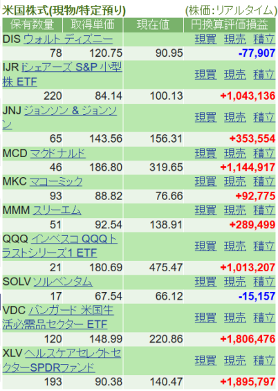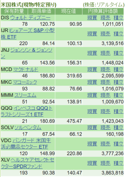 こうした中で私の米国株ポートフォリオの損益状況を今月も公開したいと思います。