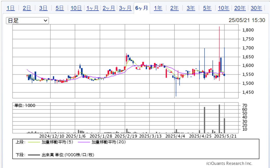 この3日間は特に何か材料があったわけではなく、場中に決算発表のあった5月12日の何倍もの出来高となっています。
