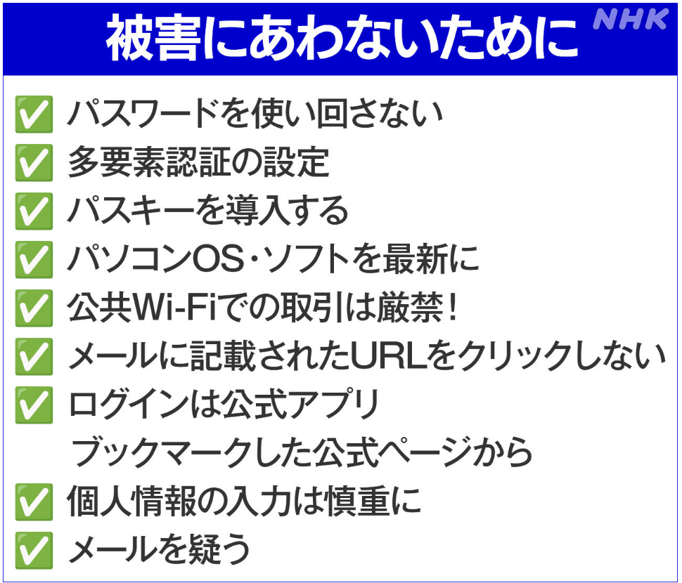 上記は下記の記事より引用した、被害にあわないために必要な対策が列挙されたものです。