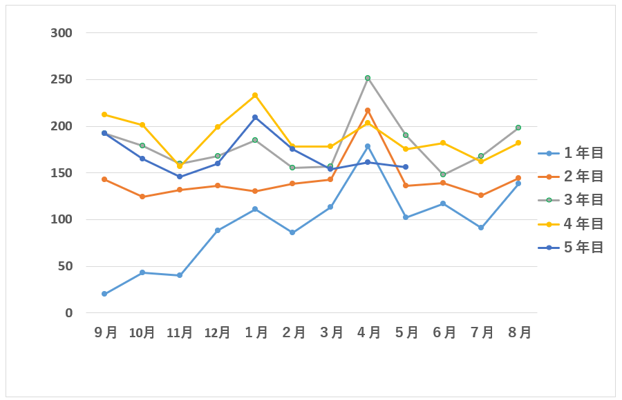 最後に商品の販売個数の推移をグラフにしたものを載せるのでご覧ください。
