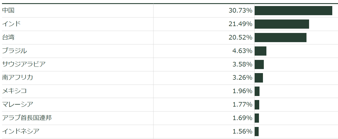 新興国株ETF「SPEM」の保有状況やリターン比較