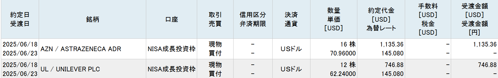 金額は日本円でユニリーバは約11万円、アストラゼネカは約17万円、計28万円ほど購入しました。