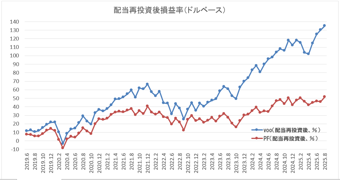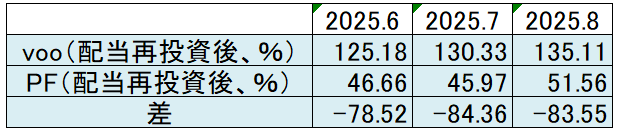 マイ米国株ポートフォリオ VS VOO(2025年8月末時点)