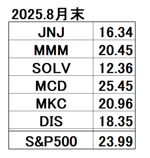 通常こういった強気相場では私の保守的な米国株ポートフォリオは突き放されるのですが、8月はS&P500の成績を若干ですが上回りました。雇用環境の悪化が影響してか、保守的な銘柄にも投資資金が回ってきたようです。