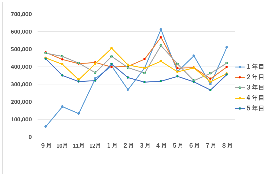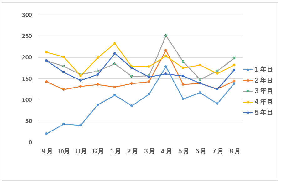 最後に商品の販売個数の推移をグラフにしたものを載せるのでご覧ください。