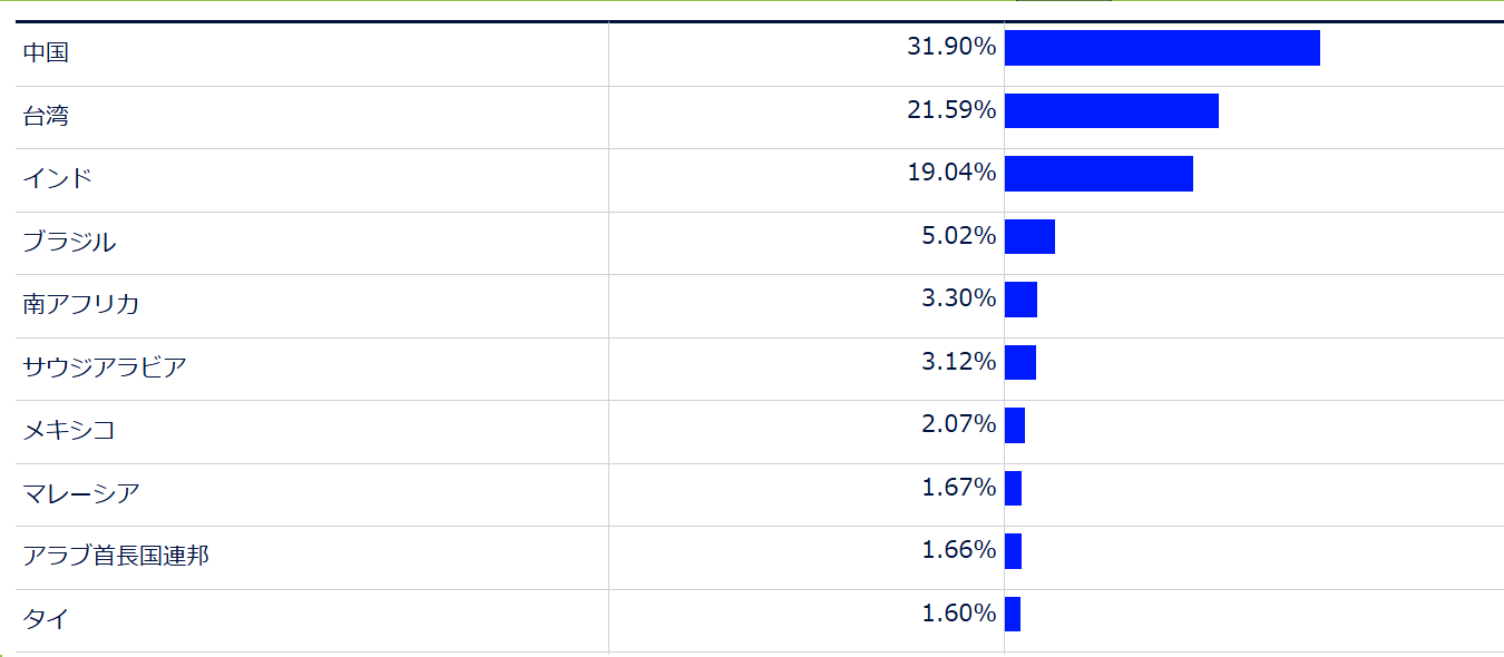 新興国株ETF「SPEM」の保有状況やリターン比較