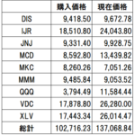 まずは各銘柄の購入価格と現在価格を比較した表を掲載いたします。なお3Mについては、スピンオフをしたソルベンタムと現在の3Mの合計金額を旧3Mとして現在価格にしています。