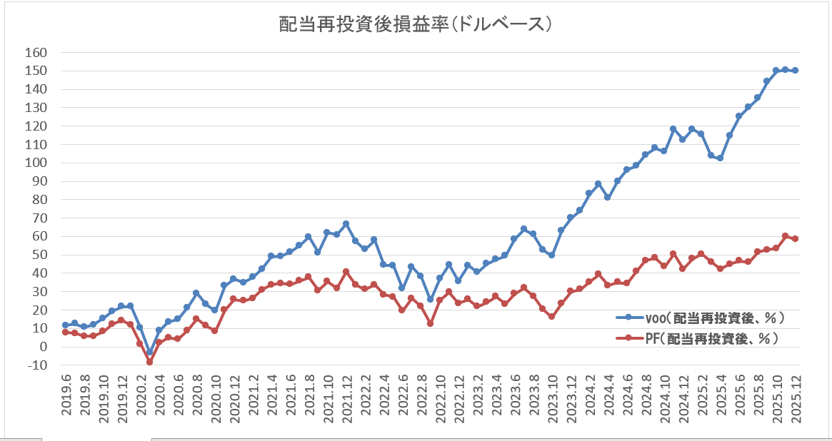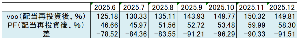 マイ米国株ポートフォリオ VS VOO(2025年12月末時点)