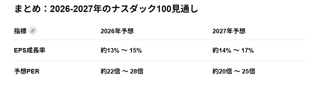 しかし問題はそのEPS成長率に対する値付けです。2026年の予想PERはドイツが16~19倍と予想されているのに対し、ナスダック100は22~28倍と大きく上回っていることがわかります。