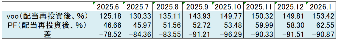 マイ米国株ポートフォリオ VS VOO(2026年1月末時点)